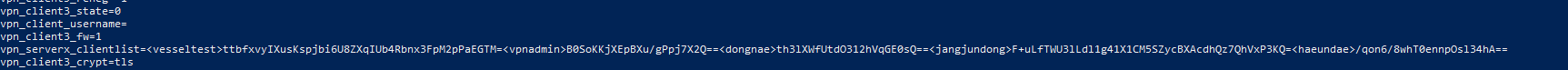 nvram set vpn_serverx_clientlist \<{사용자이름}\>{사용자 비번 base 64 인코딩}\<{사용자이름}\>{사용자 비번 base 64 인코딩}......